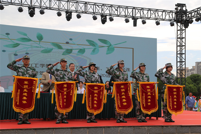 校领导为军训先进集体颁奖